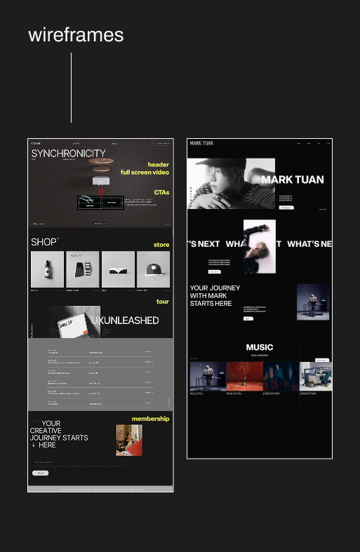 The events section effectively communicated fan sign tour details across multiple regions, the music archive section celebrated Mark’s solo music journey, and the newsletter integration captured fan email signups for ongoing engagement.