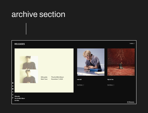 Designed and launched new website for K-pop artist Mark Tuan to coincide with his latest release, "Silhouette." With a tight 2-week timeline before the music release, the site needed to support multiple simultaneous launches: the new single and music video, a fan sign tour announcement across the US, Europe, and Asia, and the introduction of re:mark, his new community platform.