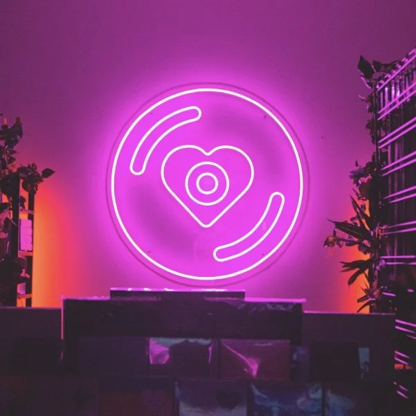 Of course it’s not just a CD, it’s a K-Pop CD. So the heart found its way to the center of the disc. I was most happy with how it reminded me of neon record shop signs you would see on a cool street, something we incorporated into our store experience with a neon sign. The CD with a heart ended up being quite iconic, and became the centerpiece of our brand’s visual identity.