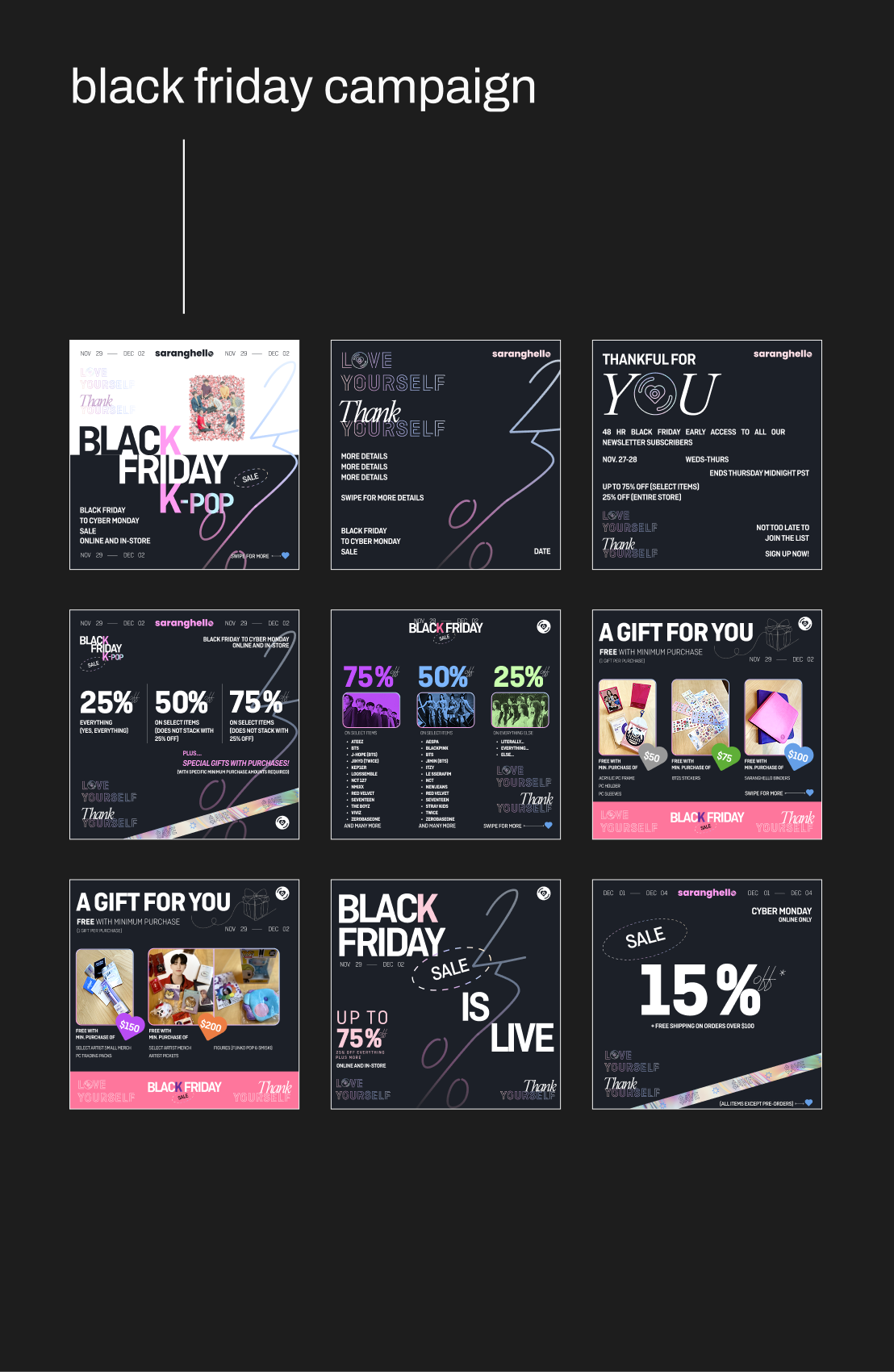 Developed a flexible visual system with core brand elements (color palette, typography, photography style) that adapts to platform-specific trends and formats. Leveraged K-culture aesthetics and references to resonate deeply with fans, creating delightful visuals that feel native to the community. Created daily content including feed posts, stories, reels, and TikTok videos across all content types.