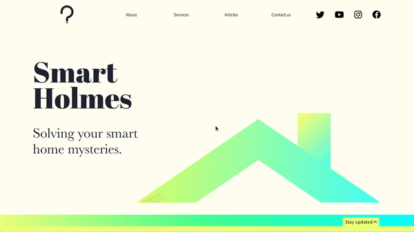 Continuing the ‘old book’ theme, I incorporated a light yellow in the background of the banner. But ultimately this is a smart home product site so it was important to use modern elements. I used warm yellow-green-teal gradients in a simplified house graphic in order to give it a contemporary feel and communicate ‘smart home’. Also, its a play on smart light bulbs and how they’re able to transition from hue-to-hue.
