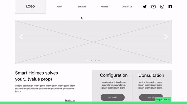 For the wireframes I designed every page for the site with completing the user journey of submitting a consultation request in mind. For the articles section I took design inspiration from various tech media websites such as Wired.com. I wanted ‘Smart Holmes’ content to look and feel more credible than your average blog.